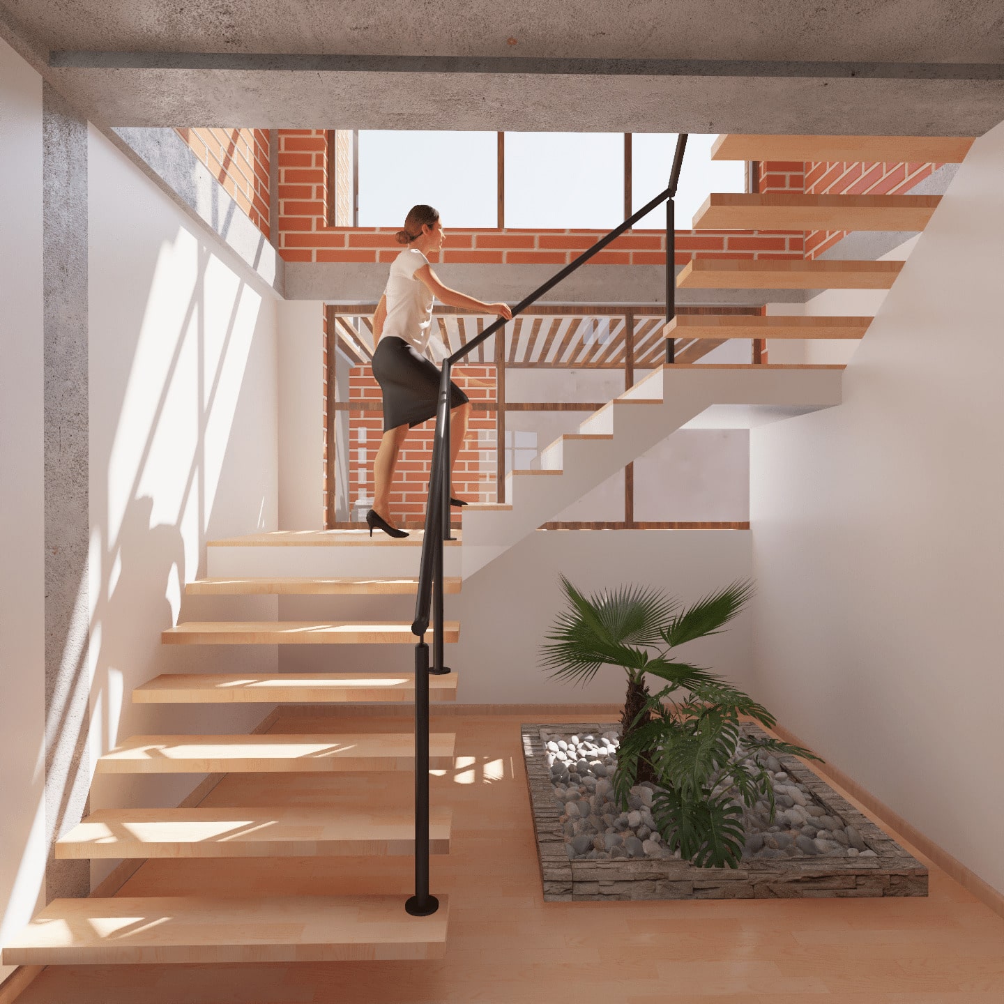 Desarrollo de vivienda para un matrimonio joven, con la particularidad de un techo a dos aguas, creando así una mayor espacialidad en ambientes sociales, el concepto inicial partió de la preferencia del cliente por este tipo de casas, por lo que se buscó realizar un proyecto que satisfaga sus gustos desde una visión más moderna y acogedora.